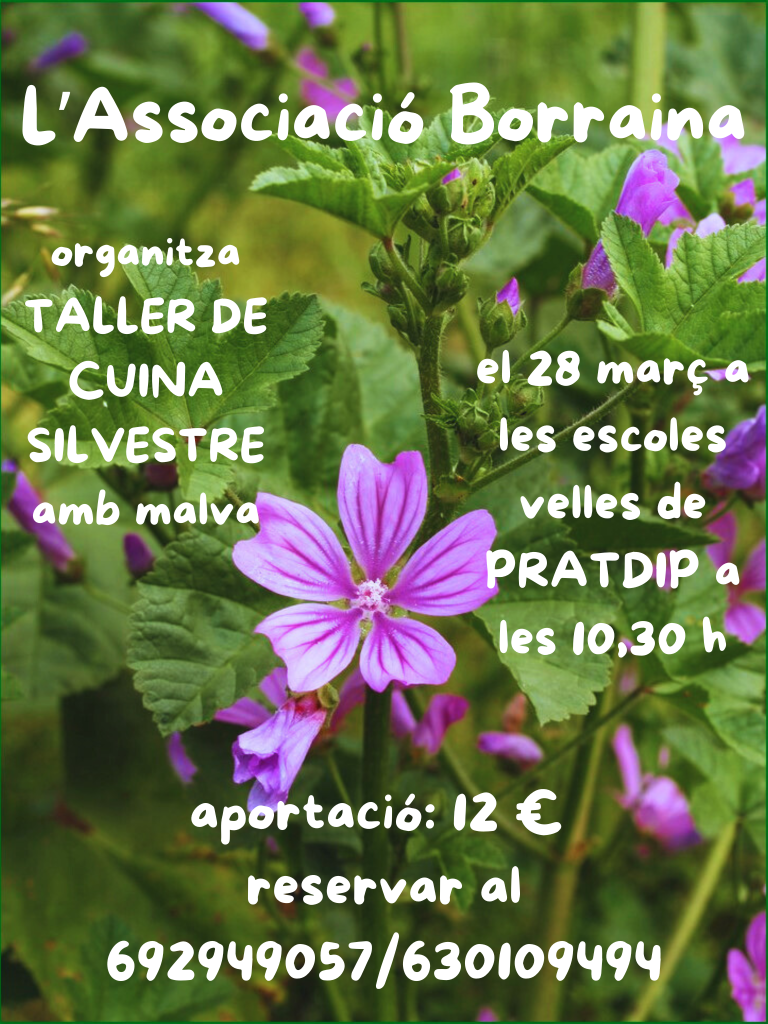 - 28 de març:Taller de cuina silvestre amb malva. A Pratdip , a les escoles velles a les 10:30 h. Truca’ns per reservar.